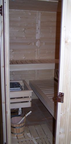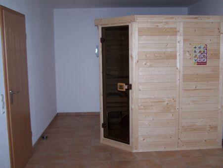 Im Keller der 3 Ferienhäuser ist jeweils (!) eine Sauna eingebaut. Dusche und Ruheliegen im Keller gehören auch zur Grundausstattung jedes Hauses.